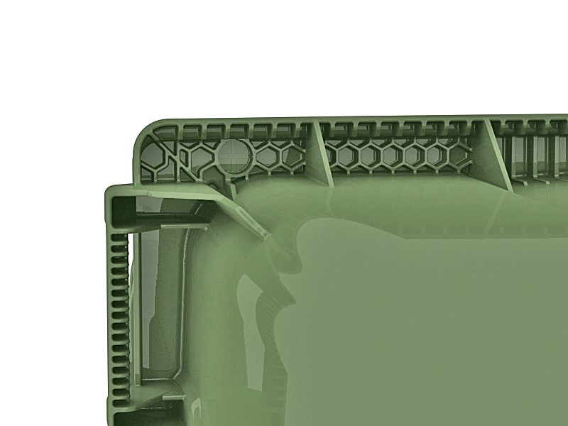 - Усиленные цельнолитые 4 ручки по краям контейнера