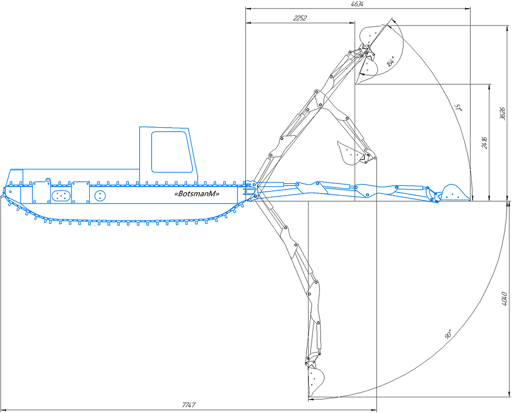 • Botsman M более мощная машина для разработки тяжелых грунтов, корневых систем, выемки тяжелых предметов.